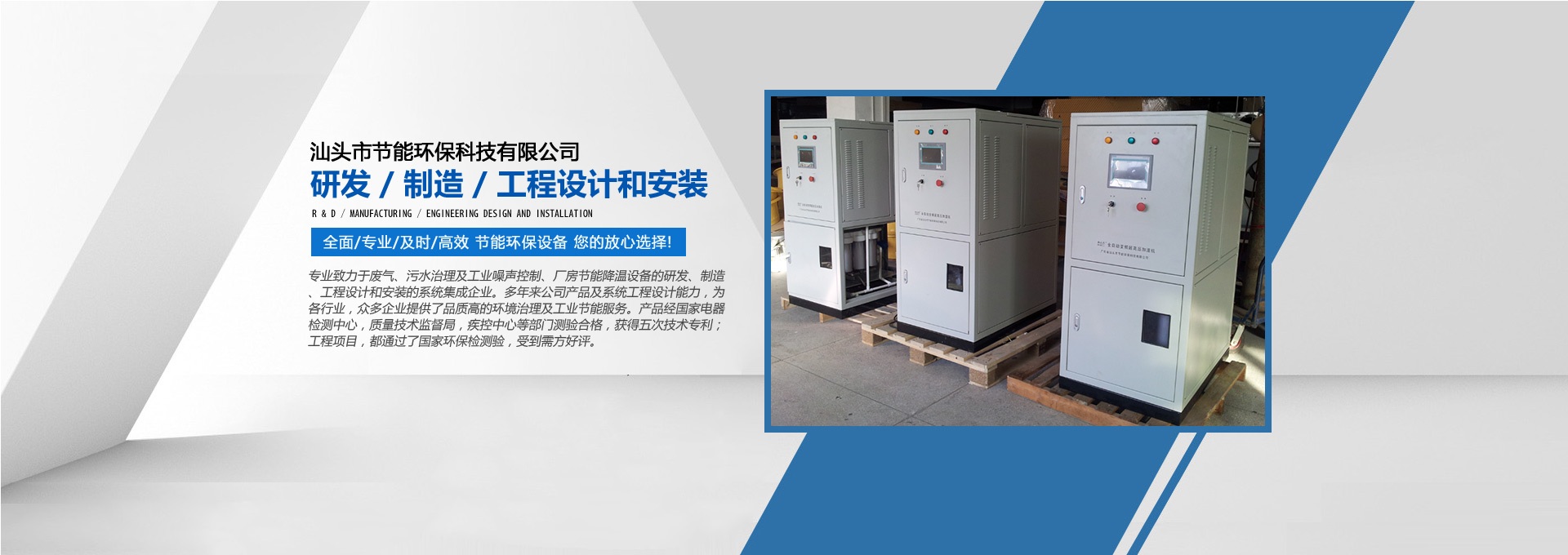 汕頭市節(jié)能環(huán)保科技有限公司創(chuàng)建于1998年,是一家專(zhuān)業(yè)致力于廢氣、污水、粉塵、噪聲治理,廠(chǎng)房節(jié)能降溫設(shè)備的研發(fā)、制造、工程設(shè)計(jì)和安裝的系統(tǒng)集成企業(yè)。多年來(lái)公司產(chǎn)品及系統(tǒng)工程設(shè)計(jì)能力,為各行業(yè),眾多企業(yè)提供了品質(zhì)高的環(huán)境治理及工業(yè)節(jié)能服務(wù)。產(chǎn)品經(jīng)國(guó)家電器檢測(cè)中心,質(zhì)量技術(shù)監(jiān)督局,疾控中心等部門(mén)測(cè)驗(yàn)合格,獲得五次技術(shù)專(zhuān)利;工程項(xiàng)目通過(guò)了國(guó)家環(huán)保檢驗(yàn)檢測(cè),受到用戶(hù)好評(píng)。